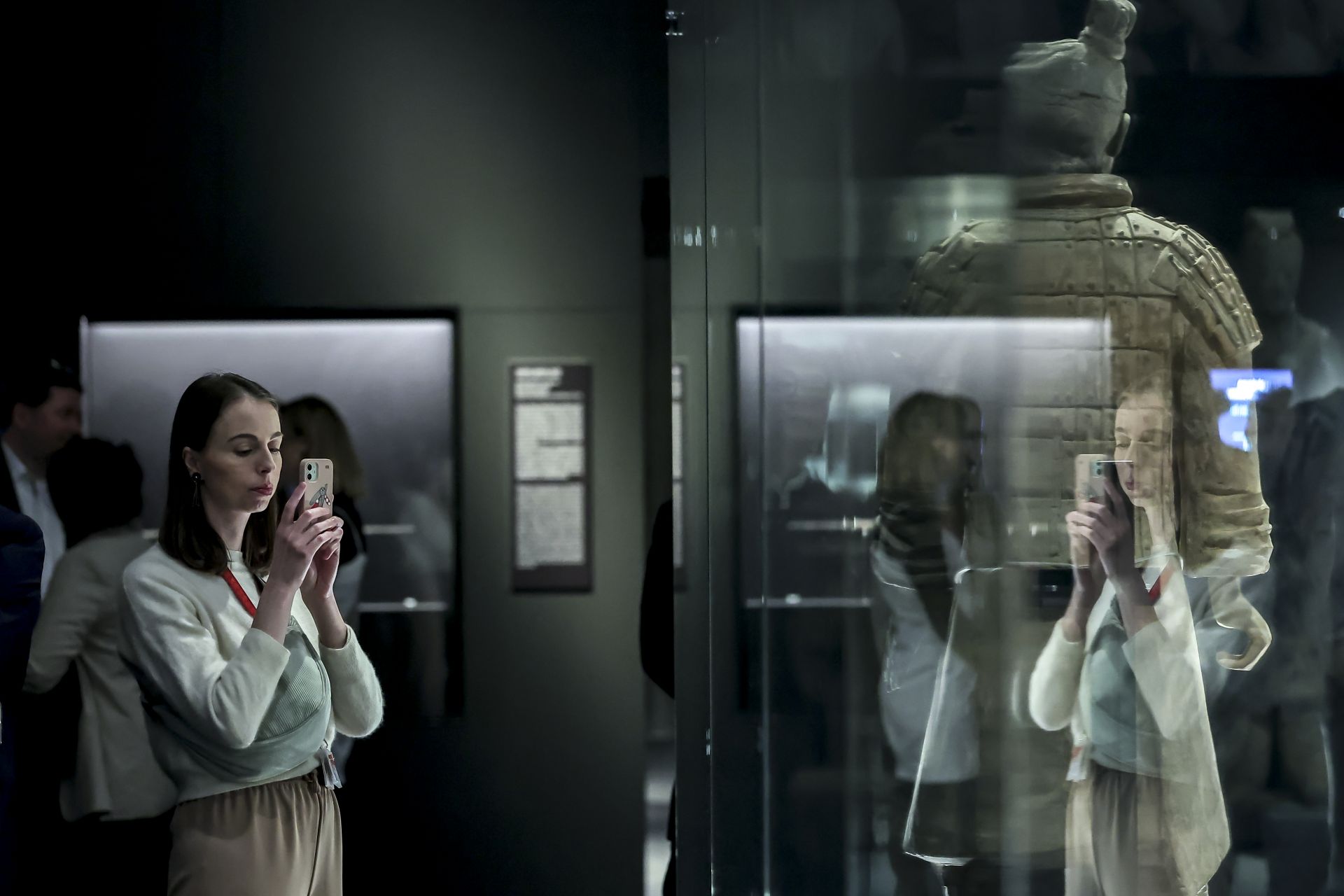 “秦漢文明展覽”27日在匈牙利布達佩斯美術館開幕。百余件春秋戰(zhàn)國至秦漢時期代表性文物,包括10件秦始皇陵兵馬俑亮相。