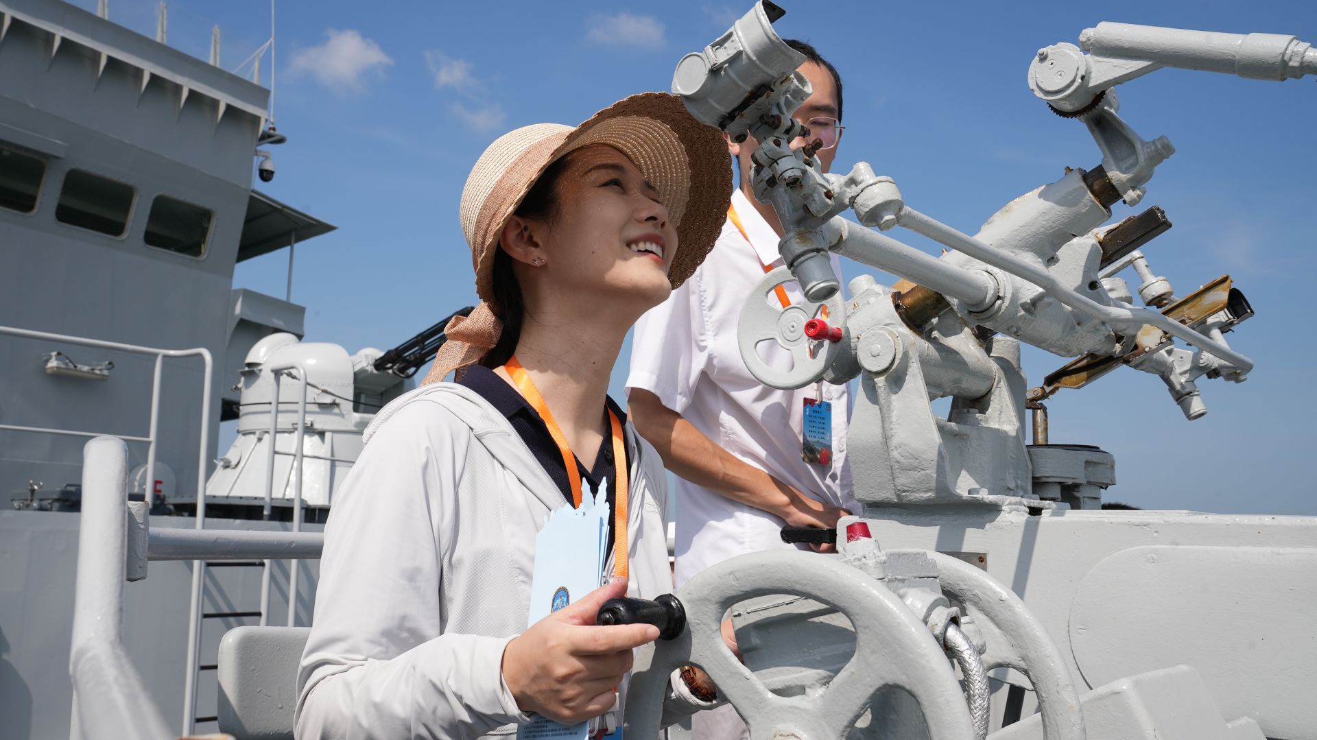 12月1日,在馬來西亞巴生港,人們參加中國海軍989編隊組織的艦艇開放活動。