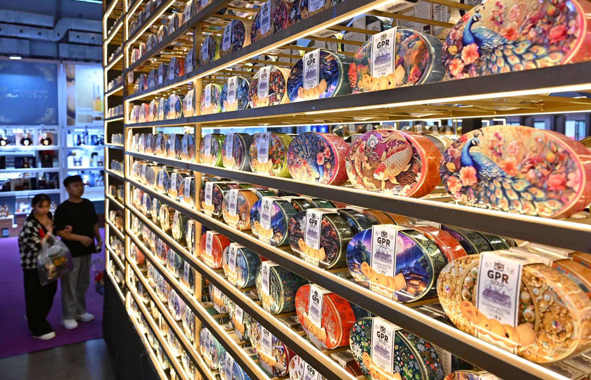 12月4日,觀眾在海南冬交會現(xiàn)場選購馬來西亞餅干。