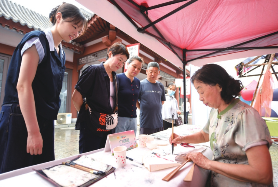 創(chuàng)造性轉(zhuǎn)化的魅力,在于“破壁”后煥發(fā)的新生命力。大集上,京劇傳承人賣力演唱的同時(shí),還展示了自己運(yùn)用3D打印技術(shù)制作的戲劇頭冠,既還原了古典神韻,又大幅提升了制作效率。更有扎染技藝傳承人推出了以板藍(lán)根為染料的扎染作品,為非遺技藝貼上了環(huán)保的現(xiàn)代標(biāo)簽?!巴ㄟ^趕大集,我的板藍(lán)根扎染受到很多市民的關(guān)注,目前已經(jīng)申請(qǐng)了非遺品牌廷蘭巷,制作的服飾、文創(chuàng)玩偶大受市場(chǎng)歡迎?!眰鞒腥送鯉r說。大集由此成為一個(gè)巨大的文化創(chuàng)新工坊,讓傳統(tǒng)與現(xiàn)代在互動(dòng)碰撞中結(jié)出碩果。